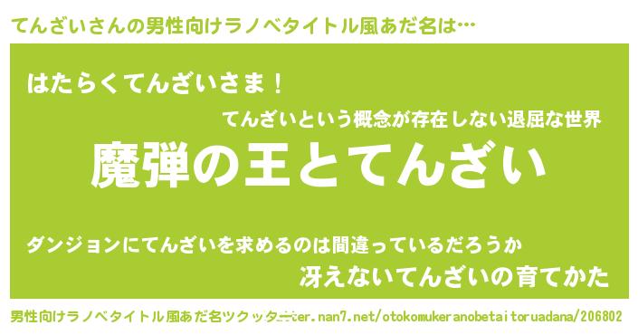 | 女子向けラノベタイトル風あだ名 | 『てんざいが死なない童話 林檎のてんざいの診療簿』 |