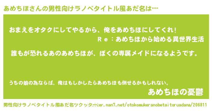 | ヘコむあだ名 | 『あめちほ(小並感)』『あめっふぃ~』 |