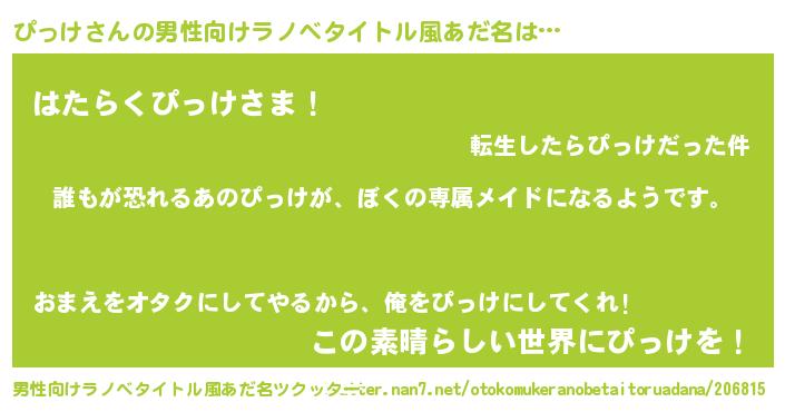 ヘコむあだ名 | 『ぴっけ(笑)』『ぴっにー』『豆乳』 |