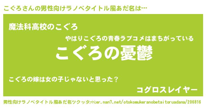 女子向けラノベタイトル風あだ名 | 『(仮)こぐろのやんごとなき事情』 |