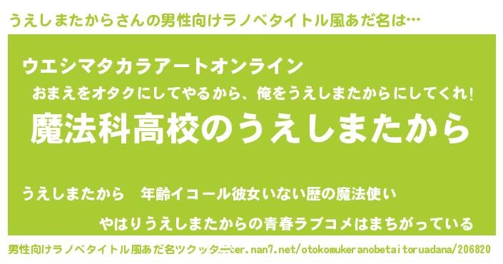女子向けラノベタイトル風あだ名 | 『うえしまたからなんてお断りですっ。』 |