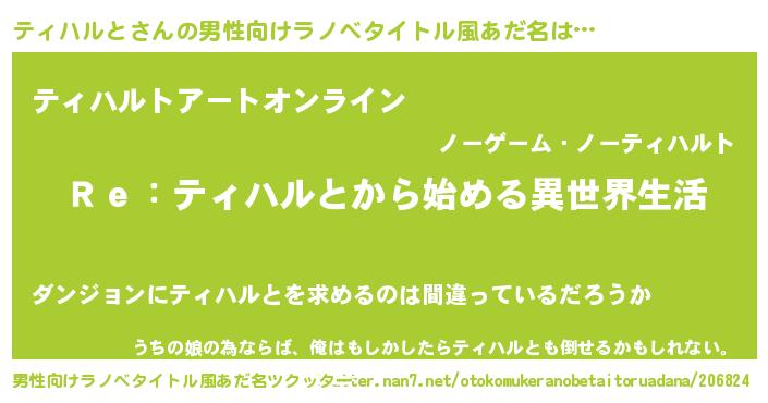 女子向けラノベタイトル風あだ名 | 『闇のティハルと』『ティハルとの婚約者』 |