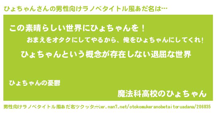 | 胡散臭い通販商品みたいなあだ名 | 『来世でも幸せになれる健康食品…その名も「ひょちゃん」』 |
