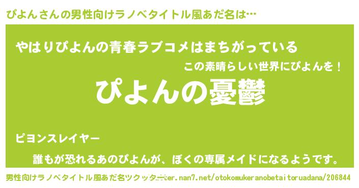 | 女子向けラノベタイトル風あだ名 | 『(仮)ぴよんのやんごとなき事情』 |