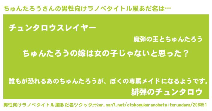ちゅんたろうさんの男性向けラノベタイトル風あだ名をツクッター!
