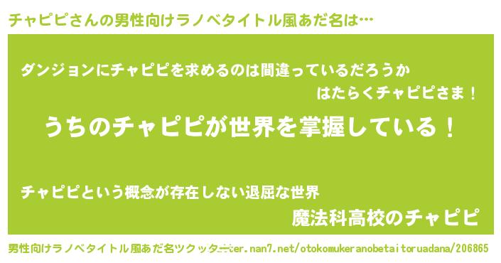 女子向けラノベタイトル風あだ名 | 『男装チャピピの憂鬱な任務』 |