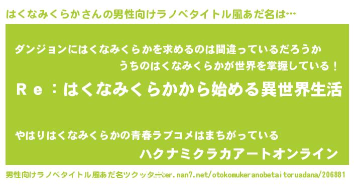 女子向けラノベタイトル風あだ名 | 『はくなみくらかストレイドッグス』 |