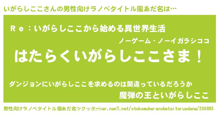 胡散臭い通販商品みたいなあだ名 | 『テレビで話題の高麗人参…その名も「いがらしここ」』 |