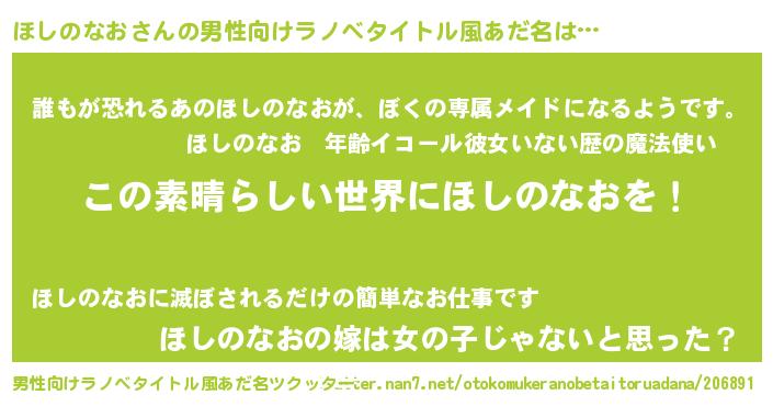 ヘコむあだ名 | 『ほしのなお(笑)』『ほしっ子』 |