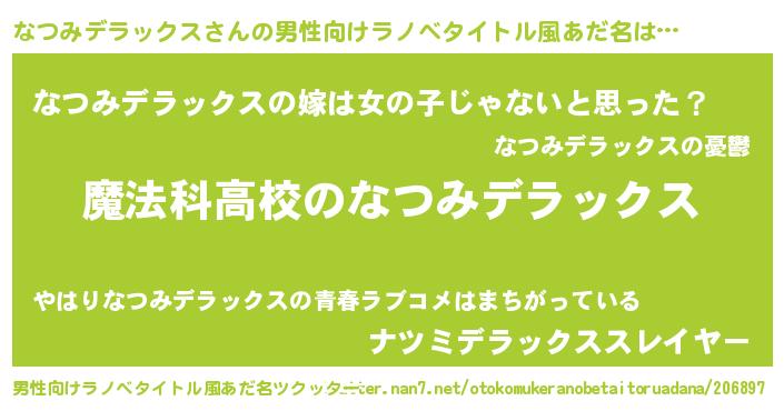| 女子向けラノベタイトル風あだ名 | 『なつみデラックスなんてお断りですっ。』 |