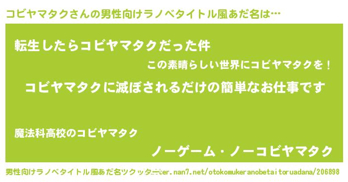 | 女子向けラノベタイトル風あだ名 | 『横柄コビヤマタクと宰相陛下』 |
