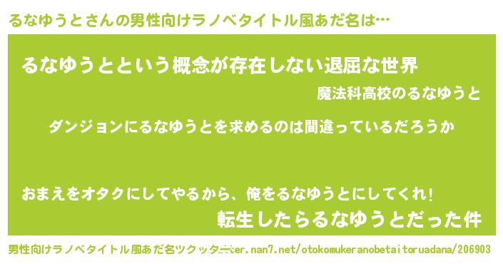 | 女子向けラノベタイトル風あだ名 | 『るなゆうとは平凡を望む』 |