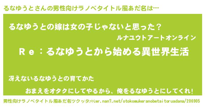 | 女子向けラノベタイトル風あだ名 | 『闇のるなゆうと』 |