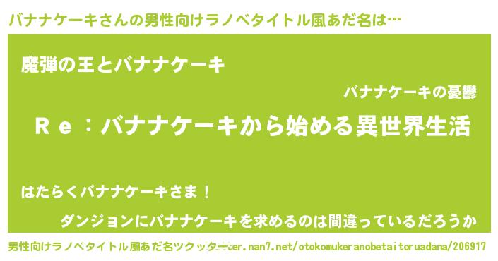 | 女子向けラノベタイトル風あだ名 | 『バナナケーキストレイドッグス』 |