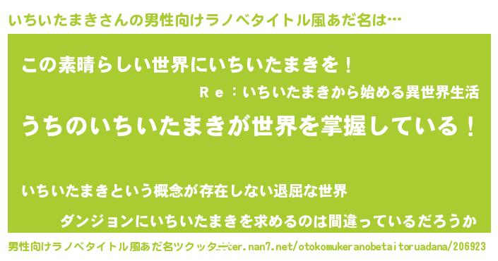 | 意味不明あだ名 | 『住所不定無職いちいたまき(14歳)』 |