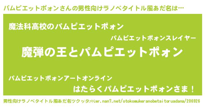 女子向けラノベタイトル風あだ名 | 『パムピエットポォンが死なない童話 林檎のパムピエットポォンの診療簿』 |