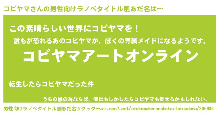胡散臭い通販商品みたいなあだ名 | 『モテモテ間違いなし霊験あらたかなお札…その名も「コビヤマ」』 |