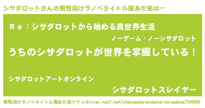 女子向けラノベタイトル風あだ名 | 『男装シサダロットの憂鬱な任務』 |