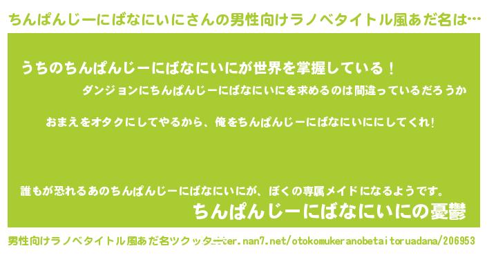 ヒーロー風カッコイイあだ名 | 『友情の使者ちんぱんじーにばなにいに』 |