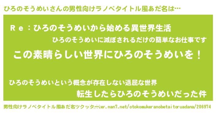 | 意味不明あだ名 | 『住所不定無職ひろのそうめい(91歳)』 |