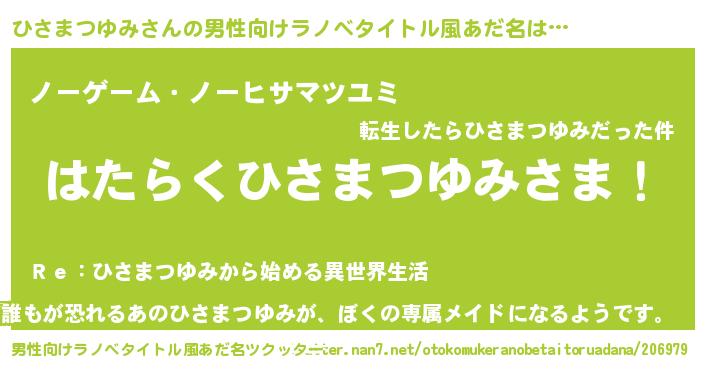ヘコむあだ名 | 『ひさまつゆみ(遠い目)』『ひさ太郎』 |