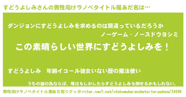 | 意味不明あだ名 | 『住所不定無職すどうよしみ(13歳)』 |