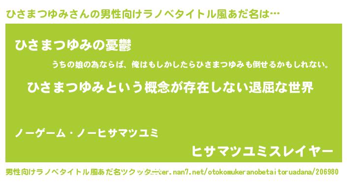 ヘコむあだ名 | 『ひさまつゆみ(遠い目)』『ひさふぇ~』 |