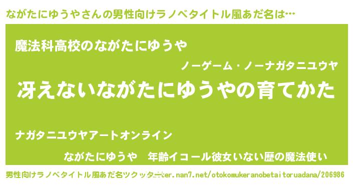 女子向けラノベタイトル風あだ名 | 『男装ながたにゆうやの憂鬱な任務』 |