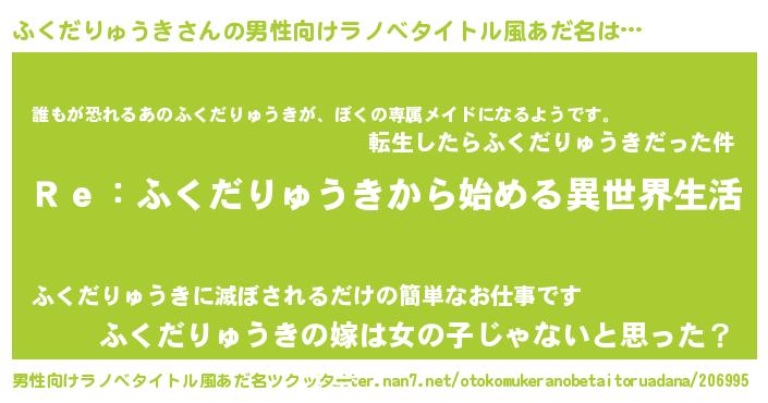 | 意味不明あだ名 | 『自称ふくだりゅうき』 |