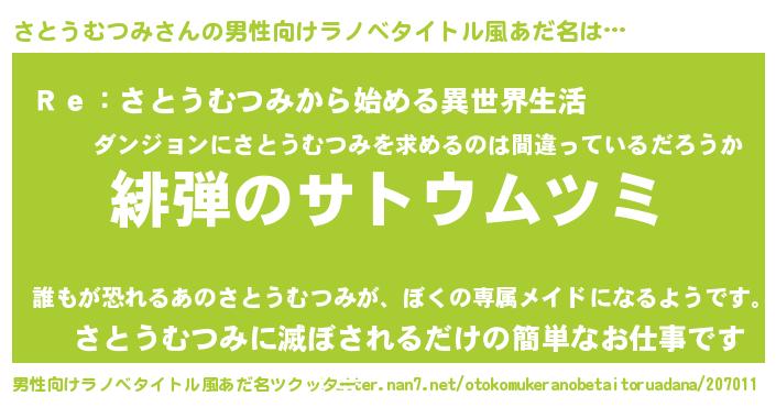 | 意味不明あだ名 | 『自称さとうむつみ』 |