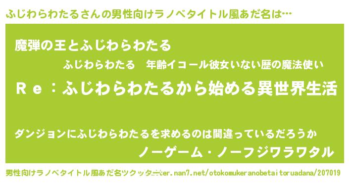 ヘコむあだ名 | 『ふじお』『ふじわらわたる(小並感)』 |