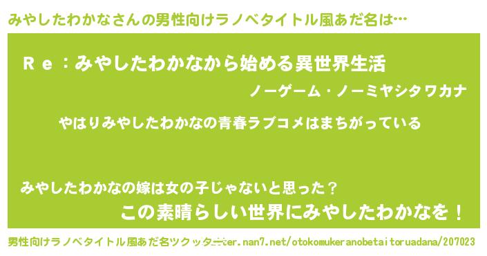 ポケモン風あだ名 | 『ミヤシダネ』『ミヤセウス』 |