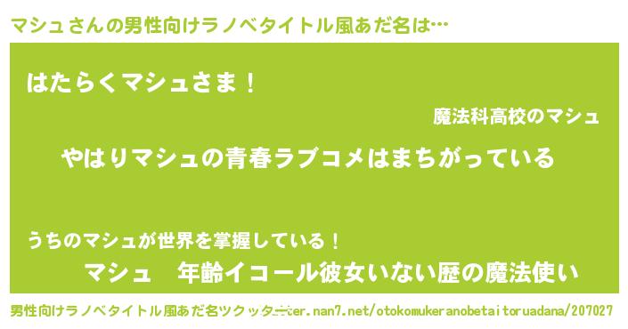 女子向けラノベタイトル風あだ名 | 『マシュの雑貨屋さん』 |