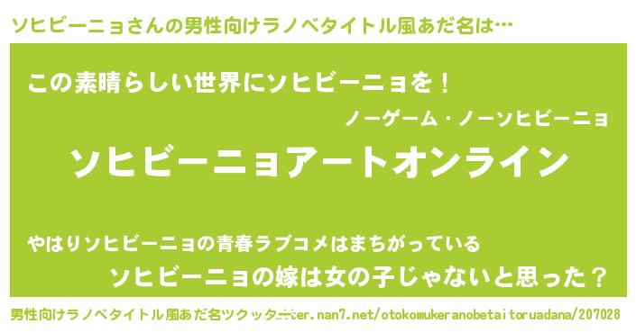 女子向けラノベタイトル風あだ名 | 『ソヒビーニョ姫と円卓の騎士』 |