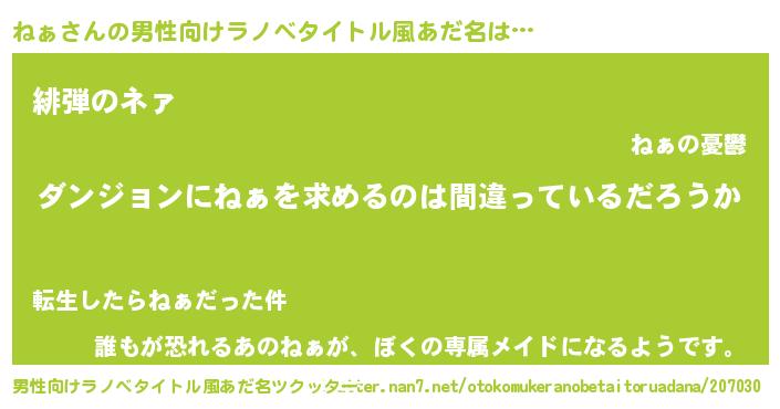 女子向けラノベタイトル風あだ名 | 『ねぁは平凡を望む』 |