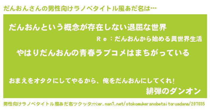 だんおんさんの男性向けラノベタイトル風あだ名をツクッター!