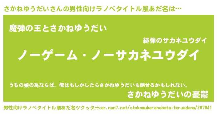 女子向けラノベタイトル風あだ名 | 『死神さかねゆうだいの再婚』 |