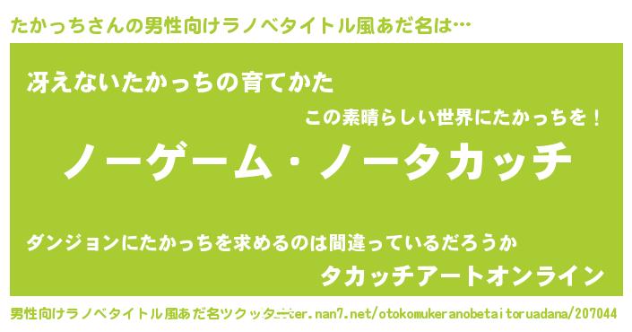女子向けラノベタイトル風あだ名 | 『死神たかっちの再婚』 |