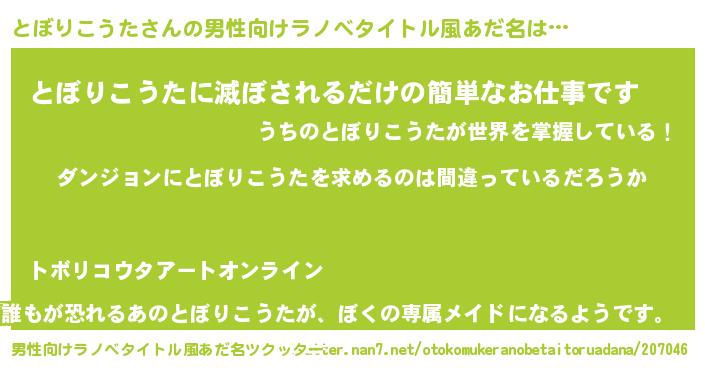 女子向けラノベタイトル風あだ名 | 『とぼりこうたは平凡を望む』 |