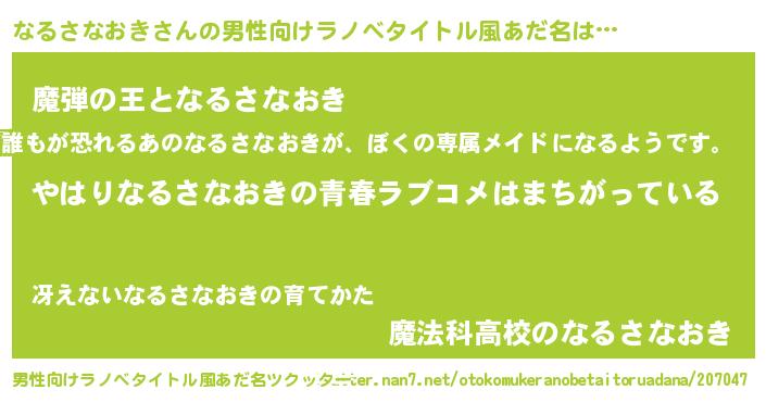 ファンタジー風あだ名 | 『エターナルナルサナオキー』 |