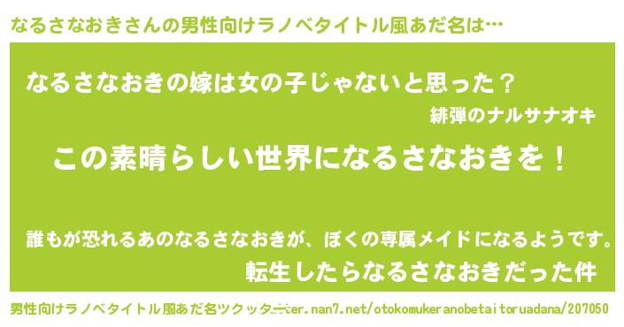 ポケモン風あだ名 | 『ナールイ』『ヒナルサナオキ』 |