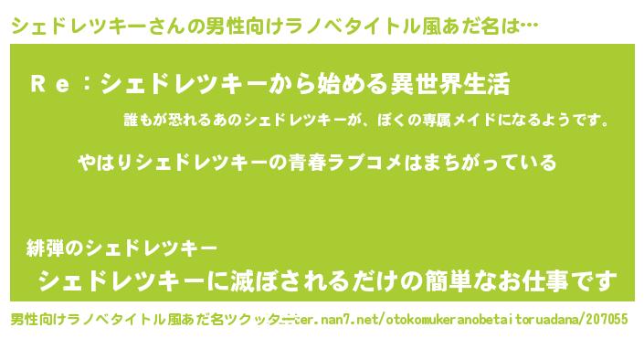 ファンタジー風あだ名 | 『エターナルシェドレツキーー』 |