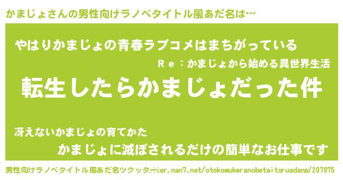 | 胡散臭い通販商品みたいなあだ名 | 『世界が平和になる高級そうな絵画…その名も「かまじょ」』 |