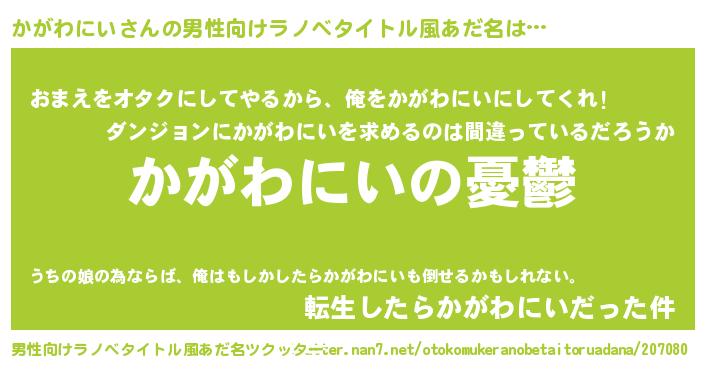 胡散臭い通販商品みたいなあだ名 | 『必ず成功する霊験あらたかなお札…その名も「かがわにい」』 |