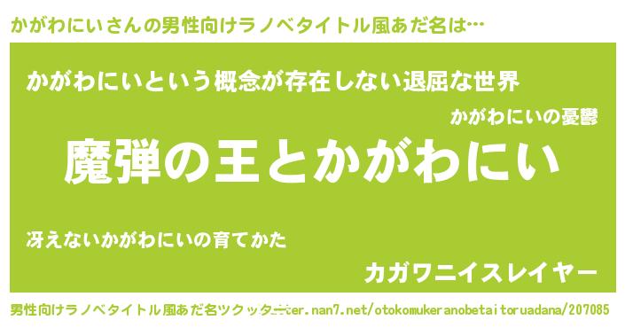 | 女子向けラノベタイトル風あだ名 | 『かがわにいが死なない童話 林檎のかがわにいの診療簿』 |