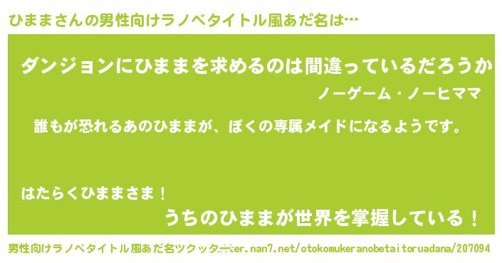 | ヒーロー風カッコイイあだ名 | 『ネオヒママ』『銀牙騎士ヒマ』 |