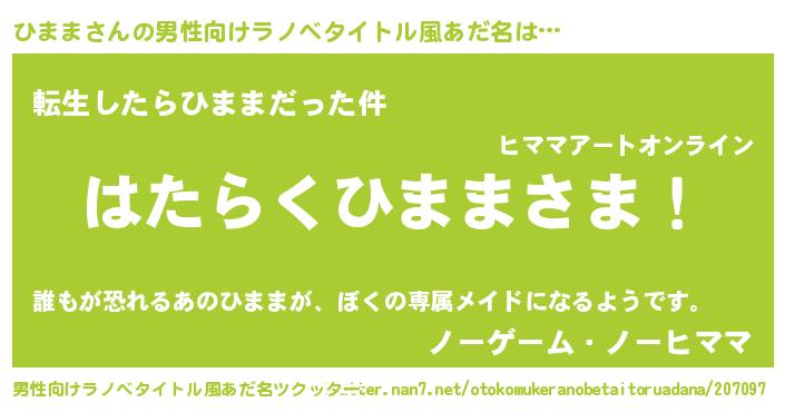 | ヒーロー風カッコイイあだ名 | 『友情の使者ひまま』『スーパーヒママ』 |