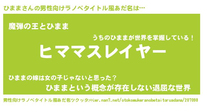 | ヘコむあだ名 | 『ひまま(笑)』『ひまを』『なまこ酢』 |