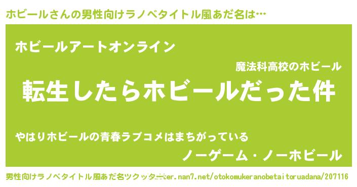 ポケモン風あだ名 | 『ホビキング』『ホビチュウ』 |