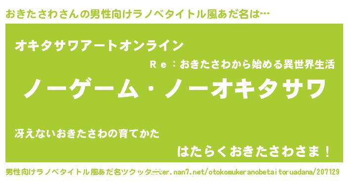 女子向けラノベタイトル風あだ名 | 『死神おきたさわの再婚』 |